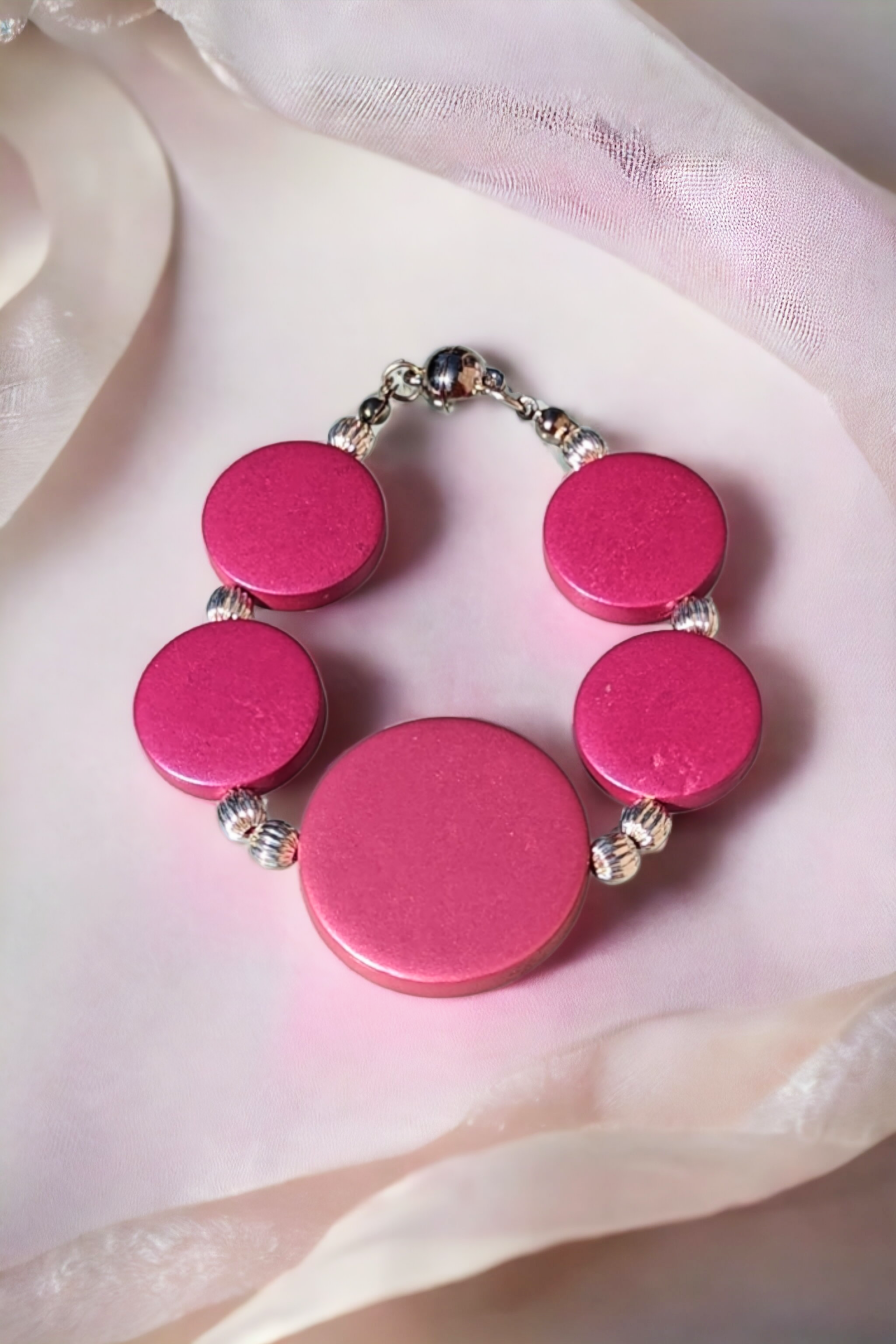 Mettez en valeur votre élégance naturelle avec notre bracelet en perles rondes plates en bois, rehaussé de perles d'espacement argentées. Mesurant 18 cm, ce bracelet est conçu pour être à la fois gracieux et polyvalent.