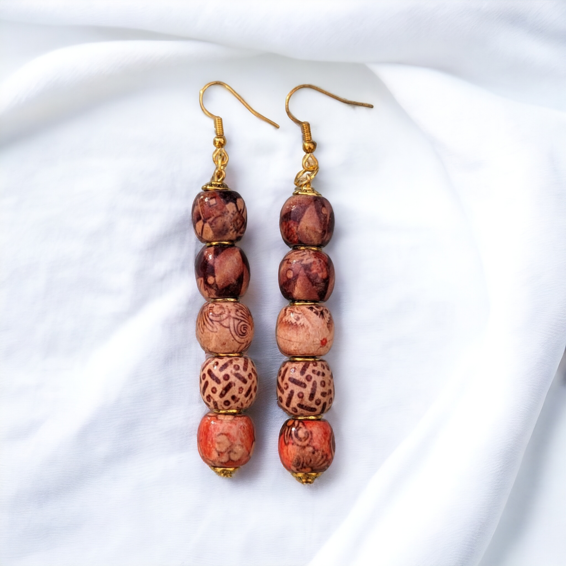Élégantes et authentiques, ces boucles d'oreilles de 7 cm sont confectionnées avec soin à partir de perles en bois macramé. Leur design unique capture l'essence de la nature tout en apportant une touche de raffinement grâce aux crochets en plaqué or.Légères et confortables, elles sont parfaites pour ajouter une note bohème chic à n'importe quelle tenue.